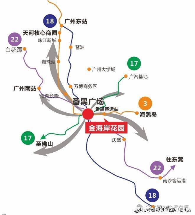 交通优势显著,项目尊处番禺客运站与番禺广场双 TOD,形成五轨交汇的交通格局(3 号线、3 号线东延线、18 号线、22 号线、17 号线)。这种 “一横五纵” 的交通大动脉,使业主能够畅通四方,轻松抵达城市各个区域。无论是日常通勤,还是出行旅游,都极为便利,大大提升了项目的区位价值与生活便捷性。