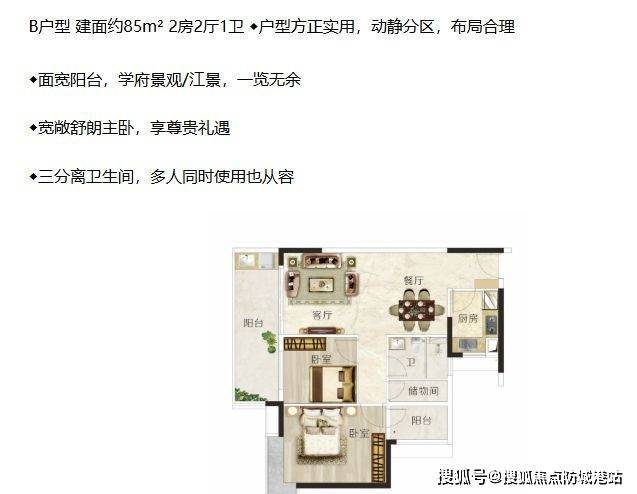 项目推出 85 - 137㎡多种户型,各户型设计方正实用,布局合理。A 户型建面约 101m²,入户花园营造尊崇仪式感,超广角巨幕阳台视野开阔,主卧套房尽显尊贵。B 户型建面约 85m²,动静分区,面宽阳台可览学府景观与江景。C 户型建面约 96m²,东南朝向,入户花园收纳生活,超大宽面阳台可瞰校景。D 户型建面约 137m²,超大入户花园,三分离卫生间,主卧套房设计尽显精致。E 户型建面约 106m²,阔绰双厅彰显大家风范,超大宽面阳台打造空中花园。F 户型建面约 92m²,动静分区合理,超大宽面阳台俯瞰城市风华,U 型厨房操作便捷。各户型通过合理布局与细节设计,充分利用空间,满足不同家庭结构的居住需求,为业主打造舒适宜居的家园。