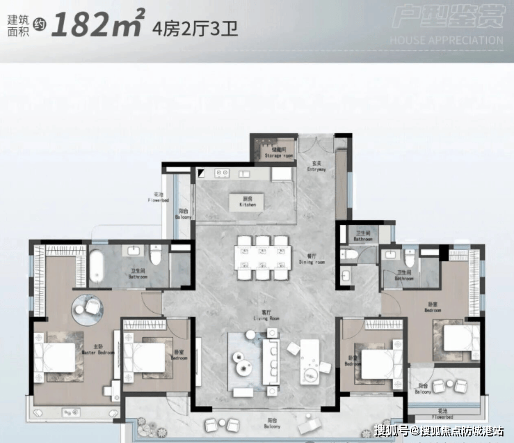 ✨142㎡四房两厅三卫:改善标杆,品质生活标配