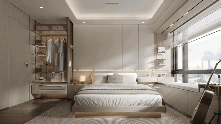 建面约109㎡户型示意图有全系统豪华主卧,宽敞的休息区域,融入独立卫浴和270°环幕转角飘窗。这样的配置,房源君仅在豪宅级别的项目见过。住在这里,每天被阳光唤醒,坐在飘窗上看书赏景,惬意十足。