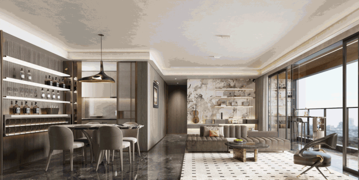 仔细观察,你还会发现其舒展大尺度:连阳台也做到约6.1米,比肩传统塔楼130㎡户型空间感。这样的跑道式阳台,让你拥有巨幕视野,还能营造多种生活场景,喝茶聊天烧烤都能轻松容下。
