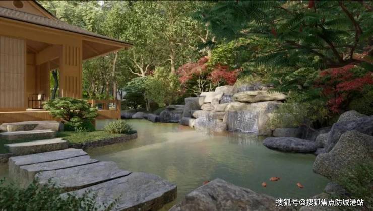 更加追求从视觉感官到精神层面的享受,一进门,迎面而来的鹿威、阴阳石、岩灯笼等艺术雕塑、日本黑松,返璞归真,一山一石,一草一木,都有让人凝神静气的感染力。△实景图△效果图