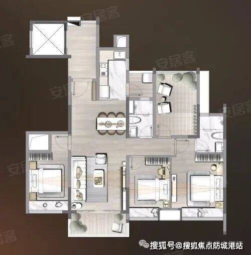 【交付标准】:全系精装交付,标配施耐德、西门子、TOTO等国际一线品牌厨卫设备,双层LOW-E隔音玻璃,全屋新风系统。