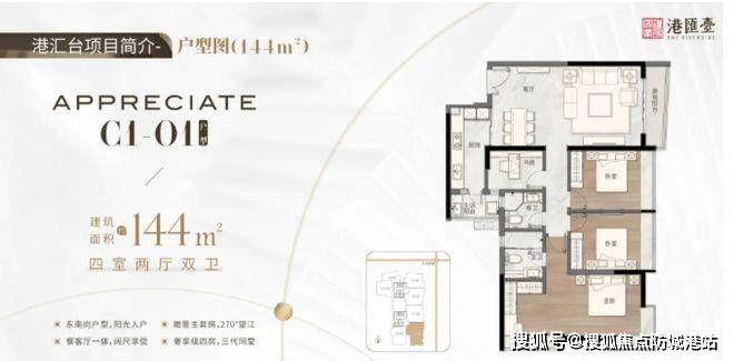 港汇台不仅地段优越,交通、教育、生活配套一应俱全,还临近珠江,部分南向高楼层户型可尽揽江景及广州塔等城市地标,且体量小仅 162 套,稀缺性十足,主推 69 - 144㎡二房至四房,能满足不同家庭结构的需求。