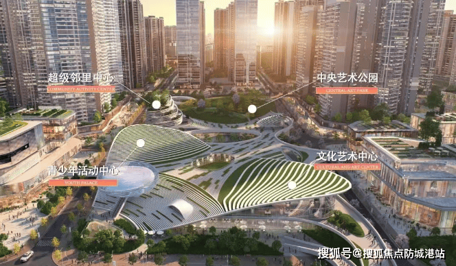 小区内部设计强调自然与人文的融合,拥有高达6万平米的医疗配套和约5万平米的文化设施,包括山体公园、文化艺术中心等。整个社区通过极具未来感的连廊和开放式设计,将各个空间节点有机串联起来,增加了公共空间的活跃性。此外,项目还规划有约7.2万平米的超级中央园林,为业主提供了宁静与松弛的生活环境。