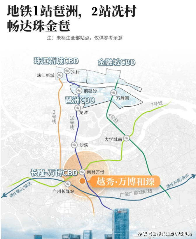 项目距离南村万博地铁站(7号线及18号线交汇站)仅约1.3公里,步行或骑行都非常方便。这里交通便利,能快速到达广州南站、老黄埔、科学城、琶洲及珠江新城等地。周边还有完善的公交网络,进一步增强了出行便捷性。