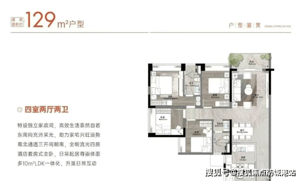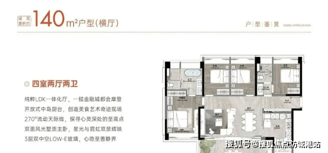 珠江天郦主推129㎡、140㎡、180㎡三种四房户型,使用率高达85%-90%,在限价时代实属难得。129㎡为传统竖厅,LDK一体化布局,餐厅采光稍弱,但创新设置入户花园改造为家政区,洗衣机、清洁工具集中收纳,提升家务效率。140㎡户型亮点突出:三面采光、18米采光面、直通南向阳台,通风与光照表现优异,适合改善家庭。180㎡则堪称“塔尖产品”:40㎡会客厅、7.4米宽景阳台、南向4.5开间、双主卧套房设计,兼顾社交排场与私密性。需注意的是,因南向紧邻骏景花园,低楼层视野受限,建议25层以上选购以获得开阔景观;北向单位则需权衡中山大道噪音影响,可优先考虑中高区并加装隔音玻璃。