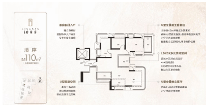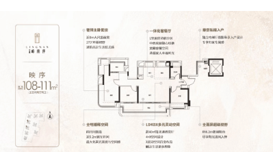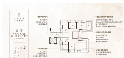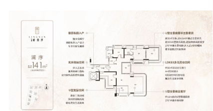 在户型配置上,岭南序主推约108-141㎡五空间改善型产品,全系强调: