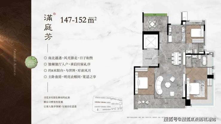 4. 建面约268㎡ 5室2厅4卫(旗舰户型):该户型为项目旗舰户型,稀缺性强,定位高端豪宅,适合高端改善型家庭或大家庭居住,目前即将加推,仅有25个席位,十分稀缺。户型采用3T2户设计,配备保姆电梯和保姆房,业主独梯入户,与保姆分开,既保证了业主的私密性,又提升了使用便捷度;户型整体朝南,南北通透,坐拥项目中至为宽敞的前后楼间距,采光面阔绰,让室外景观和采光充分融入室内;客厅、餐厅、厨房、阳台一体化设计(LDKG设计),形成近120平的大方厅,南北对流,夏天不开空调也能感受到自然风的凉爽,空间宽敞,适合大家庭聚会、孩子玩耍,家长也方便照看孩子;主卧朝南,带独立卫生间、步入式双衣帽间和270°全景飘窗,飘窗尺度超过9米,全采光设计,阳光能充分照射到主卧内,主卧面积约30㎡,空间奢华,双衣帽间、双台盆配置,让男女业主可分别洗漱、换衣,互不打扰,节省时间,兼顾个人私密性;两个次卧朝南,带独立卫生间和飘窗,面积分别约18㎡和17㎡,可作为老人房或儿童房,空间宽敞舒适;还有两个次卧,面积分别约15㎡和14㎡,可作为书房、电影院、茶室等,根据业主喜好进行改造,增加生活乐趣;该户型最大特色是空间奢华、私密性强、设计人性化,稀缺性高,是高端购房者的首选,错过再无补购机会。