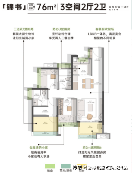 建面约76㎡ 两房两厅一卫|总价220万起