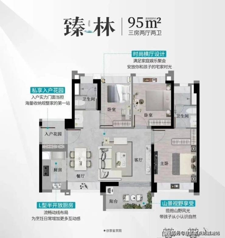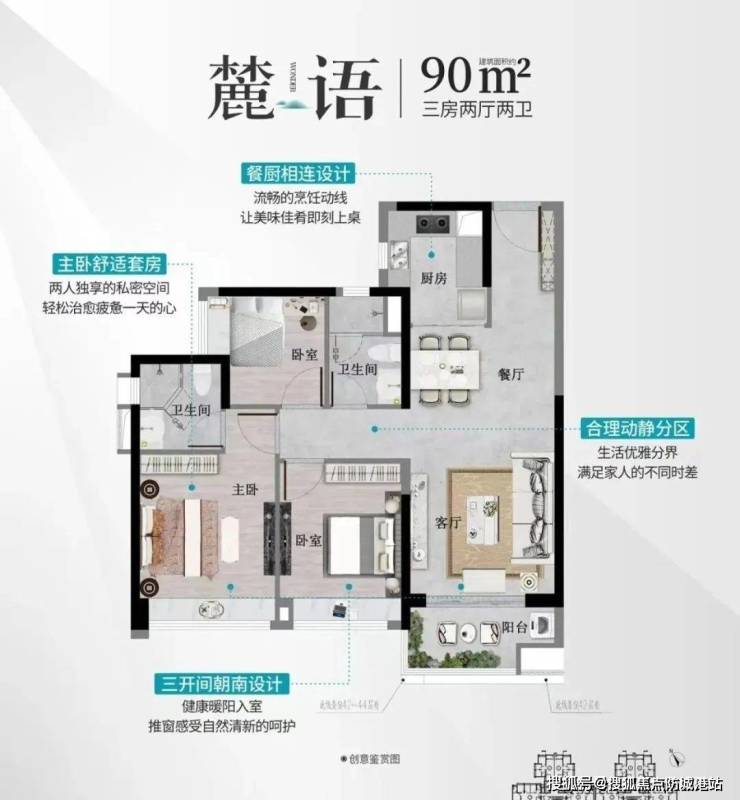 90㎡三房两卫:三开间朝南,阳光户型,总价320万起;