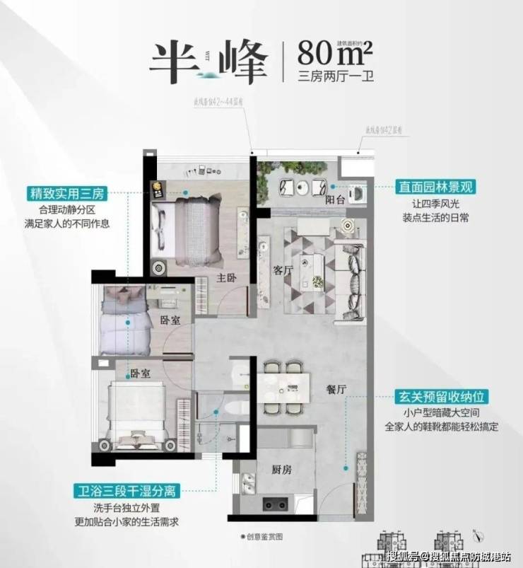 80㎡三房一卫:科城甄稀户型,总价270万起,适合年轻家庭;