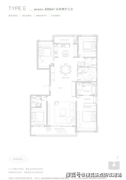 230㎡五房三卫:阔绰空间尺度 大家庭舒适之选