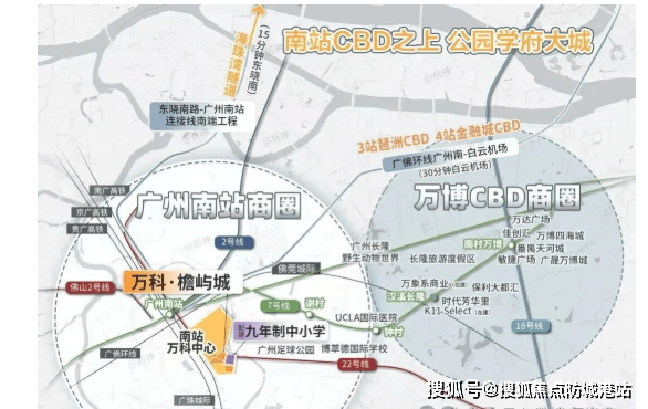 万科檐屿城交通优势显著。地块距离2号线、7号线地铁广州南站约1.1公里,6站可达珠江新城,4站到海珠,4站到万博,22号线(后通段)开通后,5站直达白鹅潭CBD,南站到市区时间缩短至15分钟。广佛环线(东环线)开通,实现广州南站与白云机场30分钟互通,并牵手金融城、琶洲CBD。此外,东晓南路 - 广州南站连接线南段与海珠湾隧道将于2025年建成通车,进一步加强南站与海珠城区及珠江新城CBD的联系。