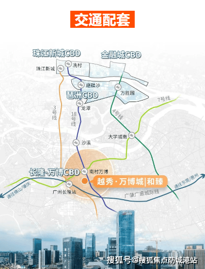 项目位于广州番禺万博CBD核心区,毗邻地铁7号线/18号线南村万博站(直线距离约800米),3站直达琶洲、4站到珠江新城。周边汇聚万达广场、四海城、山姆会员店等商业配套,同时坐享长隆旅游度假区生态资源。根据《广州市国土空间总体规划(2021-2035)》,万博板块将打造为“粤港澳大湾区数字商务中心”,区域价值持续攀升。