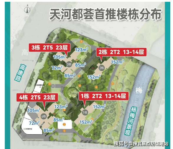 珠江·天河都荟,由珠实地产与广州城投联合开发,落子天河智慧城核心腹地,是2024年底板块最受瞩目的新晋红盘。项目由AT0305108、AT0305119两宗地块组成,总占地约5.5万㎡,总建面11.56万㎡,容积率仅2.0,主打低密小高层(13-23层),定位刚改至改善型客群。其最大亮点在于——以天河罕见的“亲民门槛”切入高端板块:主力户型72㎡起,预计总价300多万即可上车,堪称天河东“性价比天花板”。项目地处天河第三中轴发展主脉,紧邻网易、小鹏、移动南方基地等头部企业,产业聚集效应显著。同时,周边生态资源丰富,杨梅河穿境而过,火炉山、大观湿地公园环伺,真正实现“产城人”融合的宜居范本。