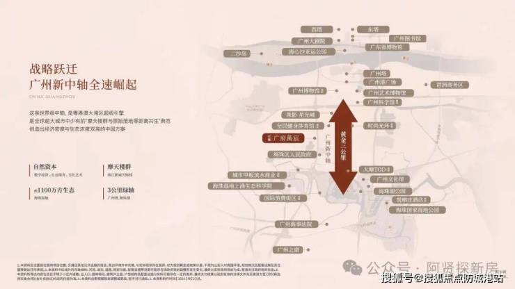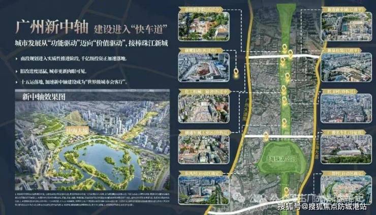 广州新中轴的价值,早已得到官方层面的权威认证与多重规划加持,是广州当之无愧的城市核心发展轴线。这条轴线南北全长十八公里,北起珠江新城财富中心、广州塔等城市地标,南至海珠湿地、长隆文旅板块,串联起金融商务、文化旅游、生态休闲、科创产业等多元城市功能,是集金融发展、生态宜居、新质生产与全球消费于一体的湾区级战略中轴。在《广州市国土空间总体规划(2021—2035 年)》《国家历史文化名城广州历史文化名城保护规划(2021-2035 年)》等重磅官方文件中,广州新中轴的规划定位被反复明确,其发展高度与价值含金量,是广州其他区域难以比拟的。