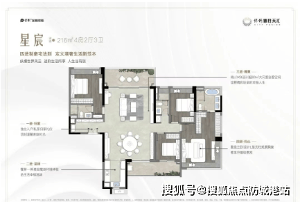 216㎡:高端改善型户型,均价2.1万元/平方米,带装修交付。
