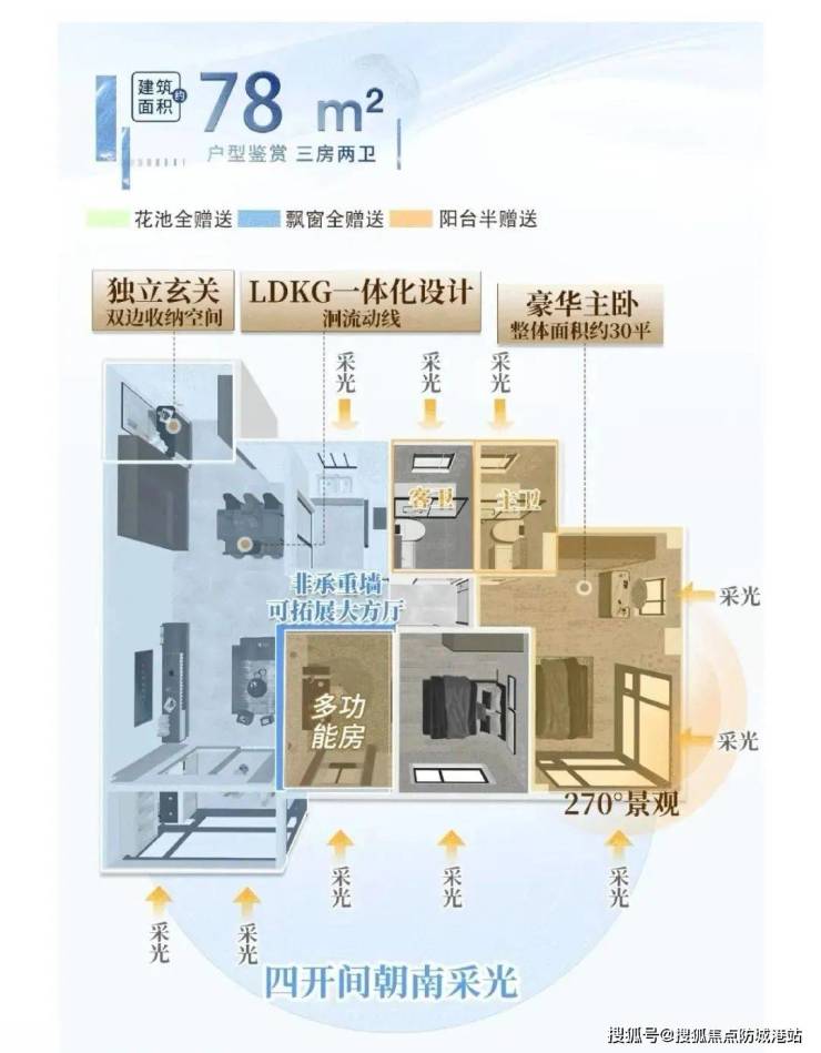 户型选择多样:首推面积范围从76至92平方米不等,涵盖了三房至四房的设计,适合不同家庭规模的需求。特别是其独特的南向双卫设计,提升了居住舒适度和隐私性。