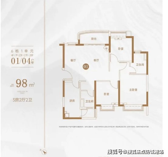 98平三房两厅两卫户型,总价区间120-147万,适合改善型家庭。户型南北通透,动静分区明确,客厅与餐厅相连,打造开阔公共空间,适合家庭聚餐与休闲娱乐;主卧配备独立卫生间与衣帽间,保障私密性与舒适度;两个次卧面积适中,均能满足居住需求,卫生间采用干湿分离设计,提升使用便利性。