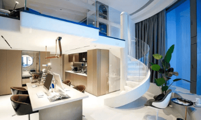 答:7大国际大师团队设计,超甲标准品质;4.5米层高LOFT复式,精装修交付;6梯24户舒适梯户比;13米挑高大堂+专属落客区;180°巨幕视野,隔热降噪玻璃;可满足居住与办公双重需求。