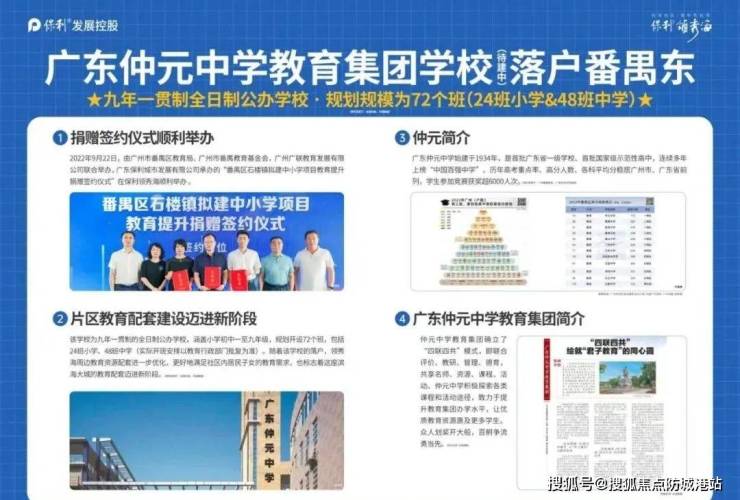 教育配套是项目核心亮点,番禺区教育局正式官宣,保利领秀海划入广东仲元中学新校区招生地段,2024年9月开学。仲元中学作为广东省级名校,新校区为9年一贯制公办学校,提供从小学到初中的一站式精英教育,业主子女可凭房产证入读,实现“家门口的名校教育”。周边还有莲花山小学、石楼中学等教育资源,填补板块教育短板,书香氤氲中铺就菁英成才之路,为刚需家庭解决子女教育后顾之忧。