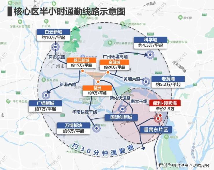 保利领秀海雄踞番禺东部莲花湾板块,地处琶洲以南、珠江入海口西岸,是广州“东进南拓”战略的重要支点。区域内南大干线、新化快速等交通动脉贯通,串联万博CBD、大学城、国际创新城等科创高地,形成“广州科创走廊”。莲花湾规划为大湾区人才枢纽,依托莲花枢纽(规划)与多条过江隧道(规划中),未来将承接琶洲、金融城等核心区的人才与产业外溢,成为珠江新城-琶洲-金融城“金三角”20公里生活圈内的价值洼地。政府巨额财政投入推动区域开发,汽车产业集群与滨海新城规划赋予板块长期发展势能,擎领广州东进潮向。