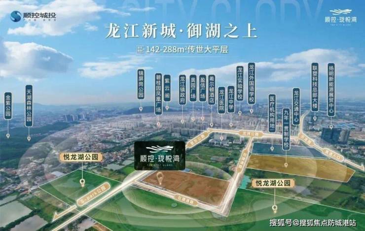 顺控·珑悦湾位于龙江新城核心位置,旁边为悦龙湖设计公园,周边有四大商圈,五大公园,配套齐全。项目由顺控城投开发打造,占地面积约5.1万㎡,共规划8栋住宅,总建筑面积约20万㎡。楼盘主打高端、置换改善户型,主推建面约142-325㎡的270度阔景大平层产品,打造龙江最高端的临湖奢居,首期交楼时间预计为2026年年底。