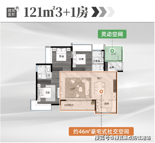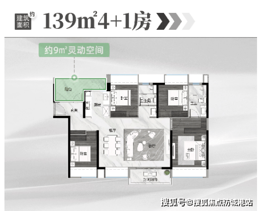 118㎡四房两厅两卫:南北通透设计,LDK一体化设计让家庭场景自由切换,配备约6.6米的宽景阳台。