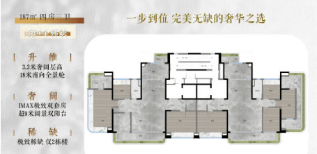 特别值得一提的是,190平方米户型还升级了全效中央空调,首创温室平衡三管制系统,对不同空间实施温度、洁净度、气流等全方位调节,为业主健康提前做考虑。此外,项目大门长达88米,高达10米,被誉为广州门王,大量运用奢华石材,彰显非凡气派。