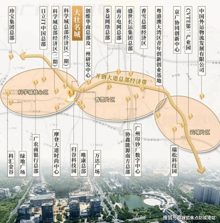 大壮名城・名门雄踞广州科学城核心板块 —— 暹岗片区,是科学城政务中心、商贸中心、发展中心、教育中心四大中心的唯一交汇点,占据科学城 “黄金 2 公里” 核心腹地。科学城作为黄埔经济发展的 “定海神针”,2023 年 GDP 达 4315.17 亿元,稳居广州第二,全国科技城综合实力排名仅次于上海张江,位列全国第二,远超北京中关村、杭州未来科技城。
