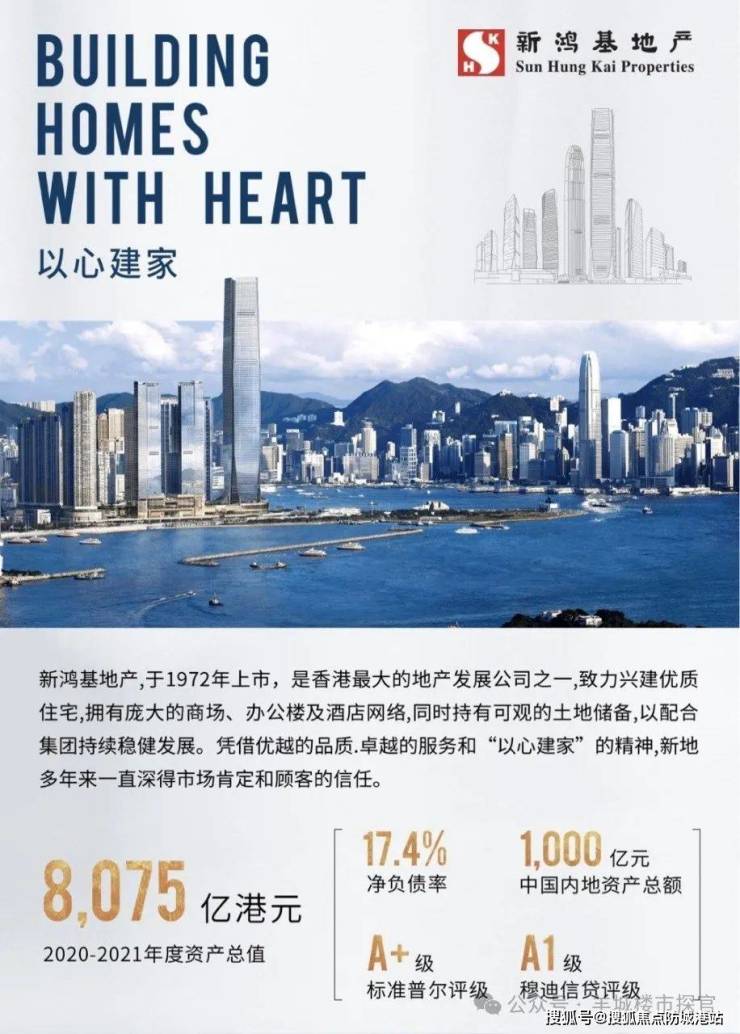 新鸿基峻銮由国际著名设计机构如NIKKEN、SOM、KPF负责设计,这些机构曾设计过世界级建筑如纽约世贸中心一号、东京六本木新城等。住宅部分“峻銮”提供豪华设施,包括9米高入户大堂、双会所和1700平方米活动区,确保住户享有优美景观。项目占地面积约250000平方米,建筑面积约860000平方米,绿化率约35%,容积率2.97,共有14栋楼,总层高23~29层,总户数约1300户,梯户比为2梯4户。目前在售的是B1、B2栋,面积为96~124平方米的三至四房户型。