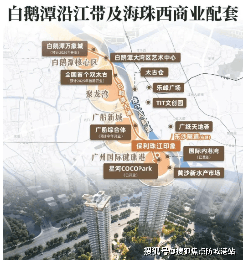 项目所在的东沙国际商贸港片区北地块,属于此前保利重金布局的重要组成部分。南侧的保利珠江天悦已经率先入市,定位高端改善,主打大户型江景产品,奠定了板块的居住调性。而保利珠江印象则以更亲民的面积段切入市场,形成高低配产品组合,使板块结构更为完整。