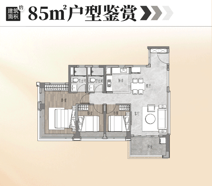 约69㎡三房,通过紧凑布局实现三开间设计,适合年轻夫妻或三口之家;约85㎡三房在客餐厅尺度与卧室私密性上更均衡;约108㎡与113㎡四房,则通过合理分区满足多成员家庭的生活需求。