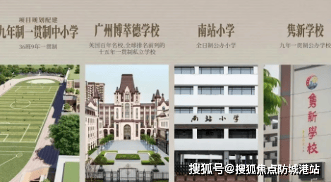 项目自带一所 36 班九年制学校 —— 湖南师范大学附属番禺实验学校,以及 9 班幼儿园。这所九年制学校由番禺区政府引进百年名校湖南师大附中管理,规划为 36 班九年一贯制学校,计划 2027 年 9 月开学,目前已启动奠基,将于今年年底封顶。
