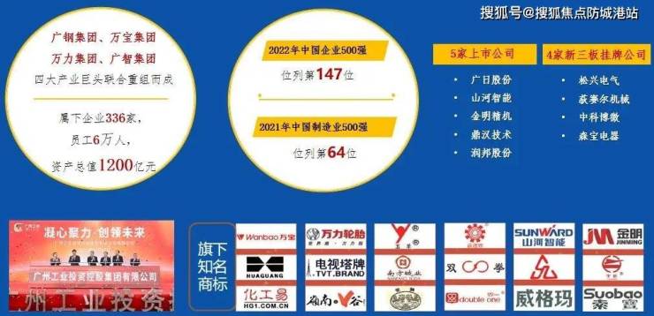 国资委广州工控集团,由广钢集团、万宝集团、万力集团、广智集团四家产业巨头联合组成,广州十大国企之一!旗下企业总数达336家,员工近6万人,在2025年前资产总值将实现超3000亿元,打造世界500强企业。