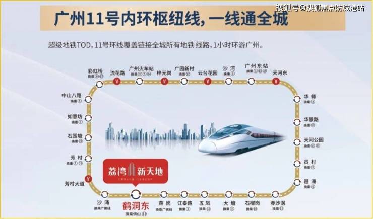350米广州超级内环枢纽线—11号线鹤洞东站,1号/10号/11号/广佛线四地铁环绕,芳村大道、鹤洞路、环城高速、东新高速无缝串联,15分钟广州南站,20分钟珠江新城。