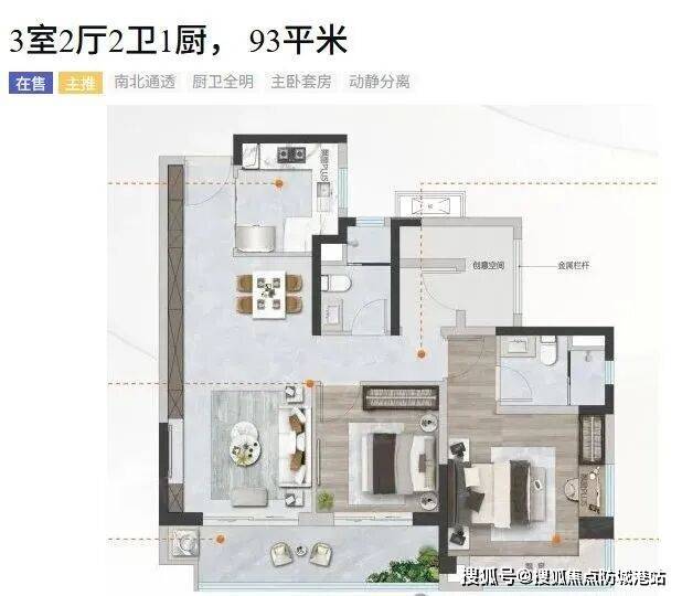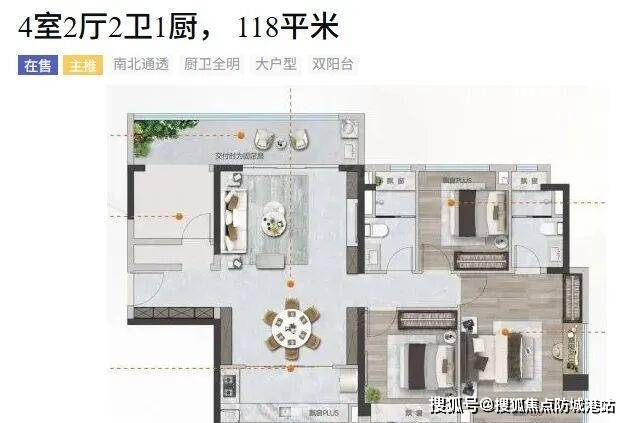 当前主打的93-118㎡三四房户型,不仅满足了刚需家庭的需求,也为改善型购房者提供了理想选择。其中,93㎡的三室两厅两卫一厨户型,南北通透,空气流通良好,主卧采用套房设计,保证了私密性和独立性。而118㎡的四室两厅两卫一厨户型则更进一步,双阳台设计增加了采光面积,空间更加宽敞明亮,适合大家庭居住。