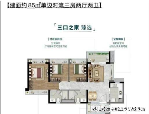 项目为现房交付,户型涵盖75㎡至107㎡的两至四房,满足刚需及改善型家庭的多样化居住需求。户型设计充分考虑通风采光、空间利用率及景观视野,部分户型配备大面积景观阳台及多处飘窗,实现居住舒适性与功能性兼顾。