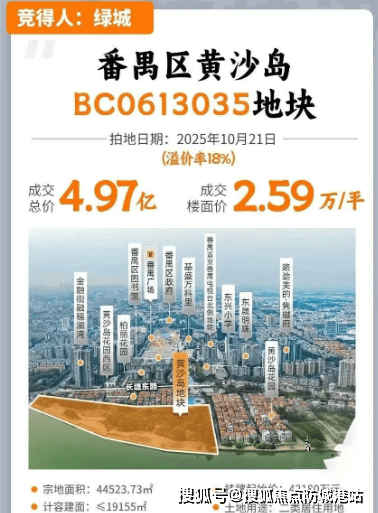 2025年10月,绿城以4.97亿元竞得番禺黄沙岛一线江景地块,楼面价高达2.6万元/平方米,溢价率达18%。这一地块之所以引发市场高度关注,在于其近乎不可复制的综合禀赋:一线无遮挡南向珠江景观、1.1超低容积率、24米建筑限高、全岛静谧环境,叠加番禺区府核心地段,堪称“番禺版二沙岛”。项目预计将打造约80–90套高得房率江景叠墅产品,建面约200平方米,精准锚定城市高净值改善客群,未来或将成为番禺广场板块的价值新标杆。