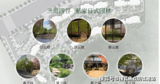 4. 社区园林配套:项目园林由亚洲景观设计巨匠小林政彦亲自设计,打造“三庭四谷”东方意境园林,以楼栋区隔,以四季命名,整体园林分成【春之谷】、【夏之谷】、【秋之谷】与【冬之谷】,同时搭配种植了代表各个季节的树株,谷转景移,每到一处都有它独特的自然气息;园内移植各式名贵树株如黑松、香樟等,一石一树皆有深意,一框一景皆不平凡,漫步其中,仿佛置身于自然画卷之中,享受静谧惬意的生活。