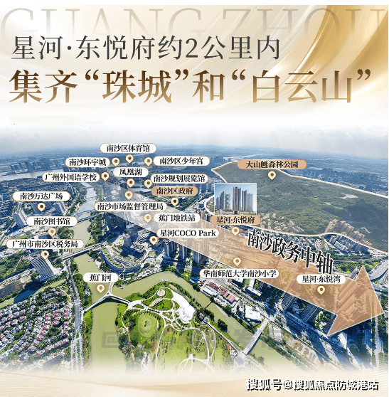 买房子,选对区域就成功了一半。而星河东悦府的核心底气,就来自于它得天独厚的南沙区府核心占位——金洲-蕉门板块。对于南沙来说,这个板块就相当于广州的珠江新城,是整个南沙的“心脏”,汇聚了区域内半数以上的高端市政和配套资源,也是南沙发展最成熟、最具确定性的板块。