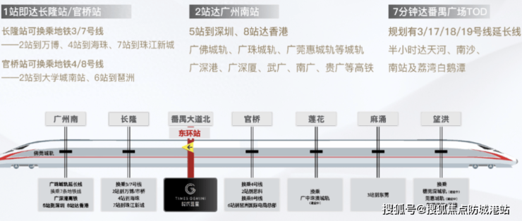 时代珑星地处万博CBD核心,依托佛莞城轨东环线(在建中),距离未来地铁站仅约150米,交通极为便捷。该城轨线路开通后将实现与地铁2、3、4、7、18号线的无缝换乘,轻松连接广州多个重要区域,极大缩短通勤时间。1站即达长隆地铁站,2站可到达万博中心,交通通达性强。项目附近主干道完善,驾车通达南沙、天河及珠江新城商业区快速方便。多轨道及公路交通的加持为业主提供高效出行,提升日常生活和工作的便捷性,是广州万博板块不可多得的优质交通枢纽住宅。