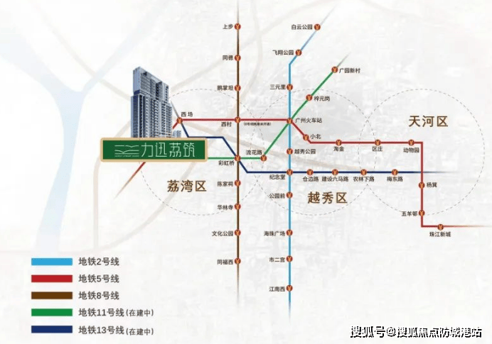 力迅荔筑地处荔湾区核心地段,下楼即达地铁5号线与正在建设中的13号线二期西场站,不换乘即可直达珠江新城。此外,周边还有多条主干道环绕,如内环路、环市路等,出行极为方便。
