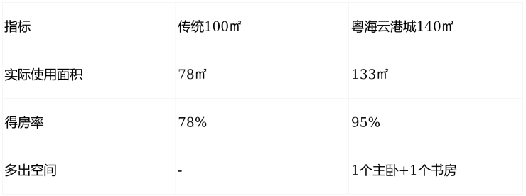 我们以粤海云港城140㎡户型与传统100㎡户型对比: