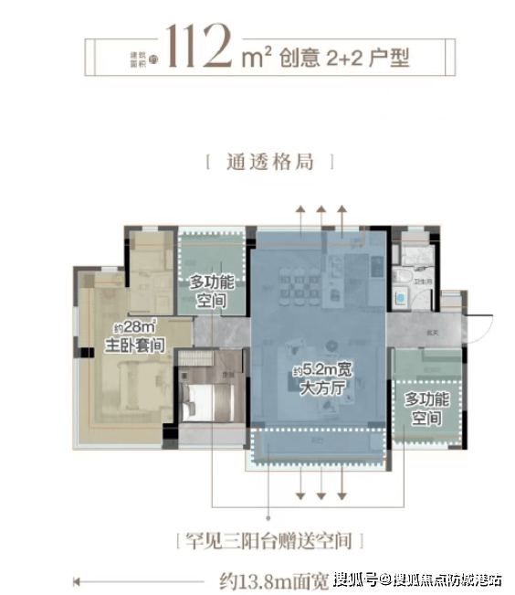 112㎡四房:被誉为“最高性价比”之选。5.2米方厅从容待客,三阳台设计大幅增加赠送面积;270°瞰江飘窗,视野升级,生活尺度全面延展。