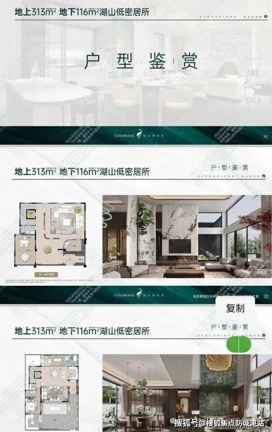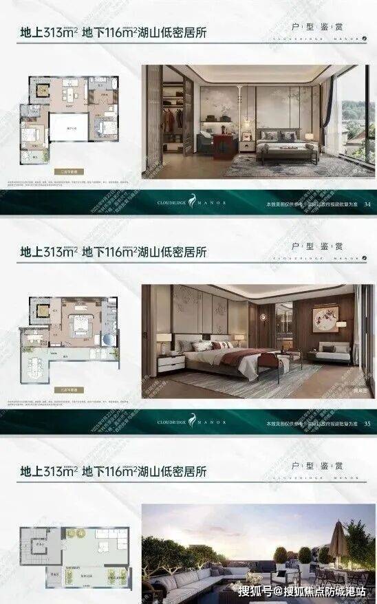 叠墅在售户型:地上199-377㎡、地下61-165㎡的“云缦”组团湖山低密别墅群