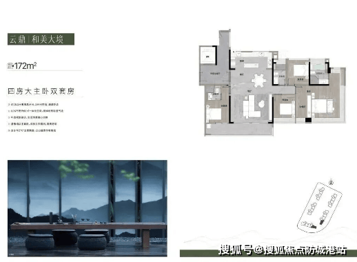 A: 项目主推128-172㎡纯板式大平层,2T2专梯专户,全南向布局,17层低密设计。公建化立面,实现0遮挡山景入户,使用率高,私密性极佳。