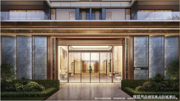 归家礼序:约50米宽奢石酒店式落客区、艺术风雨连廊、挑高约10米的酒店式大堂、地下双层精装光厅,共同构成七重归家礼序。