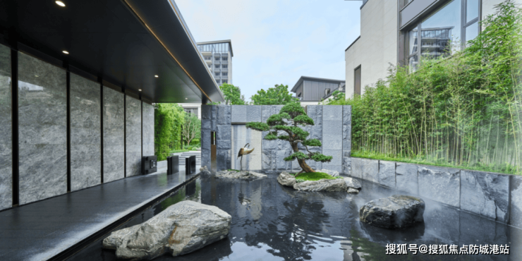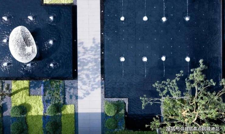 高低错落的设计,展现丰盛的景观层次。植物、水、光影、玻璃、金属、石材的运用,柔软与刚硬的奇妙结合,无处不呈现着艺术的诗意美感。